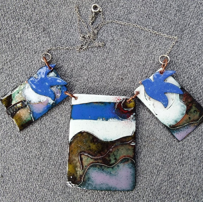 Trish also takes commissions and teaches, offering low temperature enamel jewellery-making workshops for adults and basic skills for children.